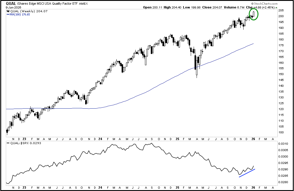 Quality Factor making new highs. Good sign for broadening in the market.